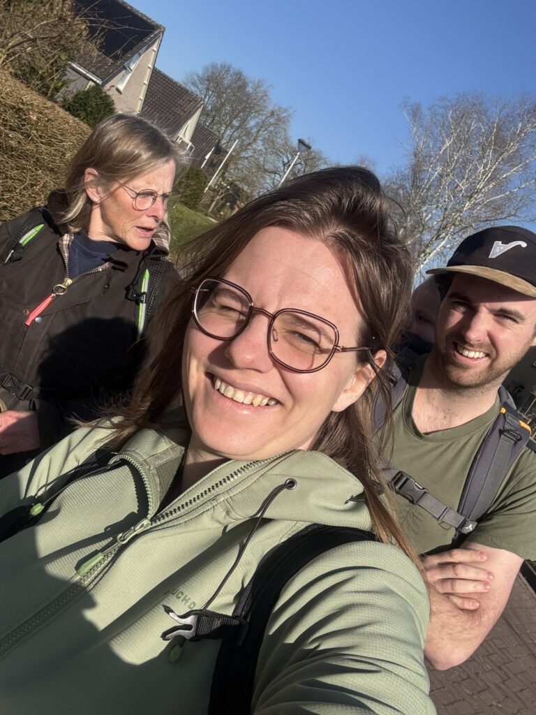 Het is een prachtige ochtend. Ondanks dat het pas maart is, voelt het bijna als lente. De lucht is helderblauw, de zon warmt langzaam onze ruggen, en al snel kunnen de truien uit. Het is zulk weer waarop je vanzelf in een goed humeur raakt, waarin elk gesprek licht voelt en elk uitzicht iets vrolijks heeft.